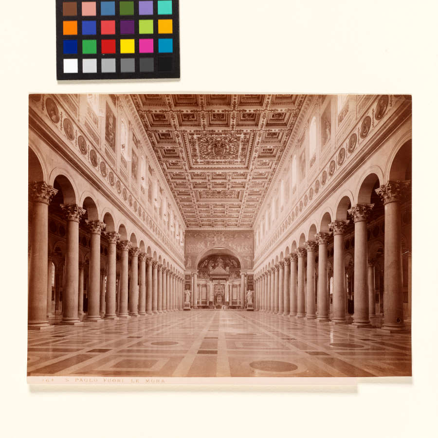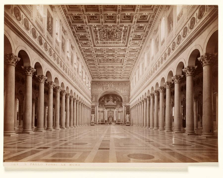 Rubber stamped on back:fotographia Anderson, Roma Inscribed below image at bottom:164. S. Paolo Fuori le Mura On verso in pencil UR:MJA Interior St. Paolo fuori le mura Stamp of photographer at LR