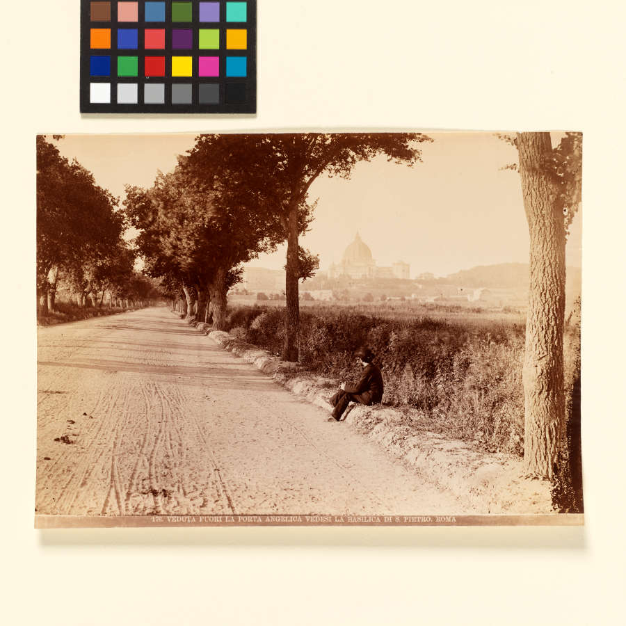 On recto along bottom:176. VEDUTA FUORI LA PORTA ANGELICA VEDESI LA BASILICA DI S. PIETRO, ROMA On verso LR:176