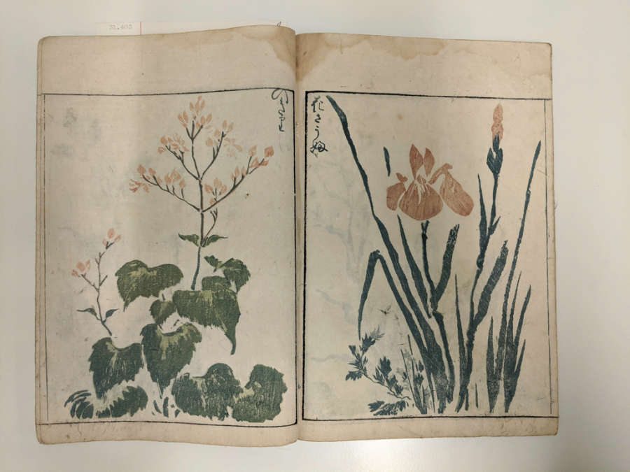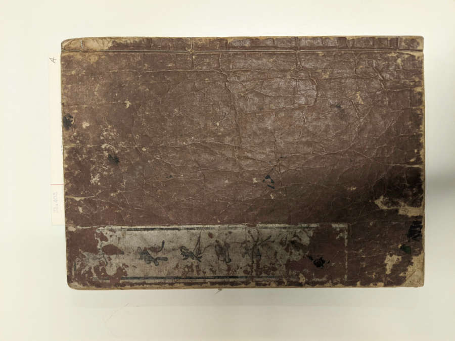 Inscription on inside of back cover, bottom right in pencil: Kuwagata Keisai
