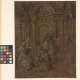 Pen and brown ink and white opaque watercolor on laid olive-brown prepared paper