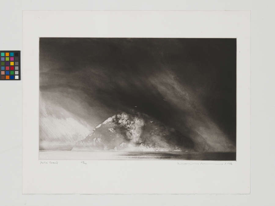 Pencil-signed Norman Ackroyd and dated 86 at lower right, numbered 49/90 at lower left center, and titled Ailsa Craig at lower left