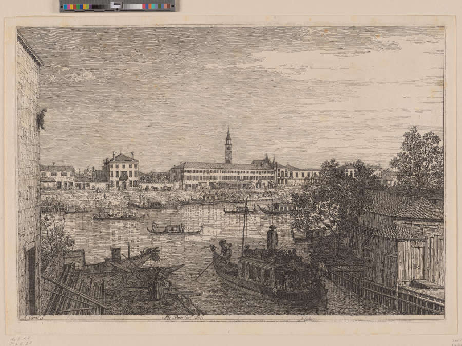 Signed on plate below image, LL: 'A. Canal. f.'; lettered on plate below image at centre: 'Ale Porte del Dolo'.
