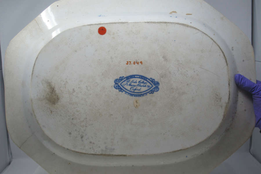 Marks: On back within ovoid:Opaque china above title in script with maker's name below.