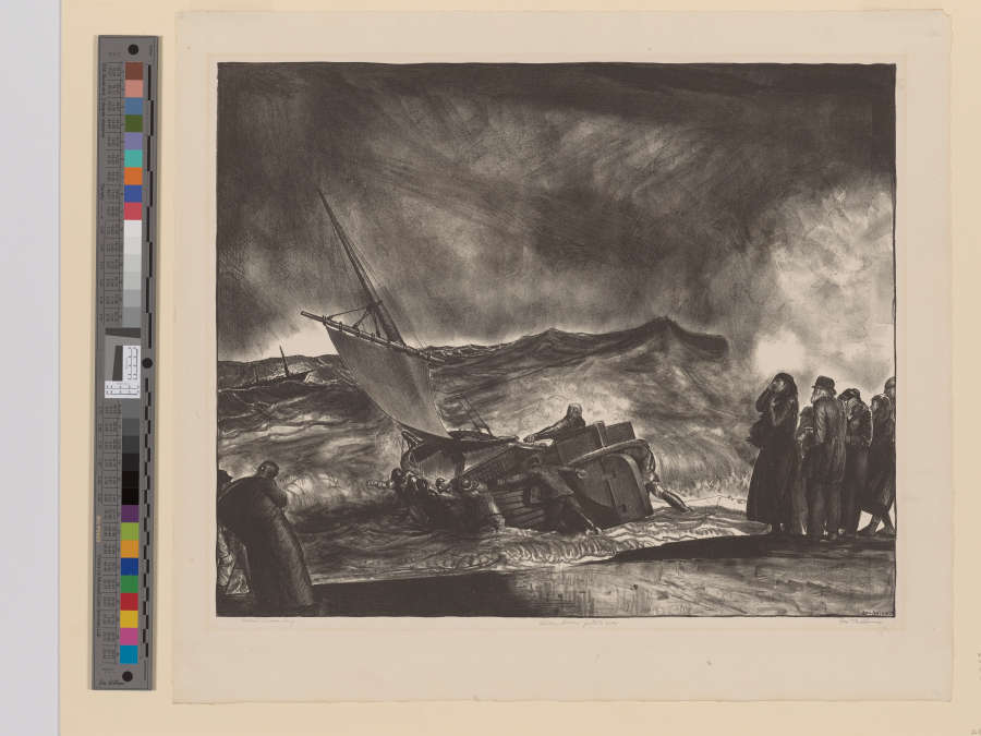 LR, inscribed in graphite: "Geo. Bellows" ; and "Bolton Brown, imp.," LC; "Allan Donn Puts to Sea." Lettered on print, LR, "Geo. Bellows"