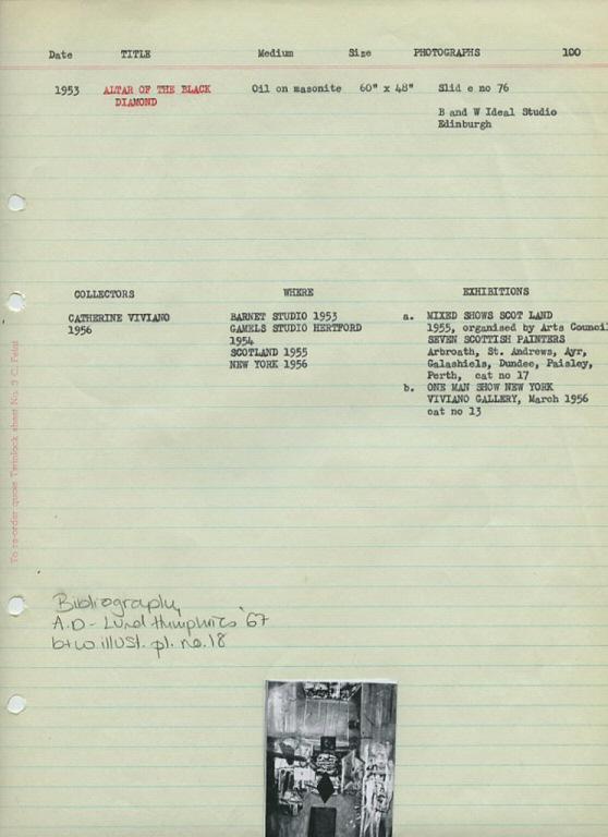 Signed and dated verso upper right corner in black paint: "Alan Davie 53." Verso upper left corner:"13."
