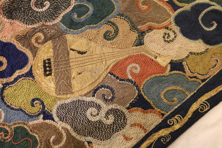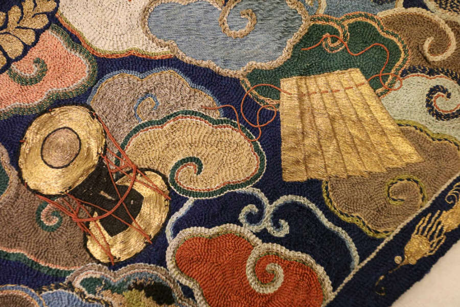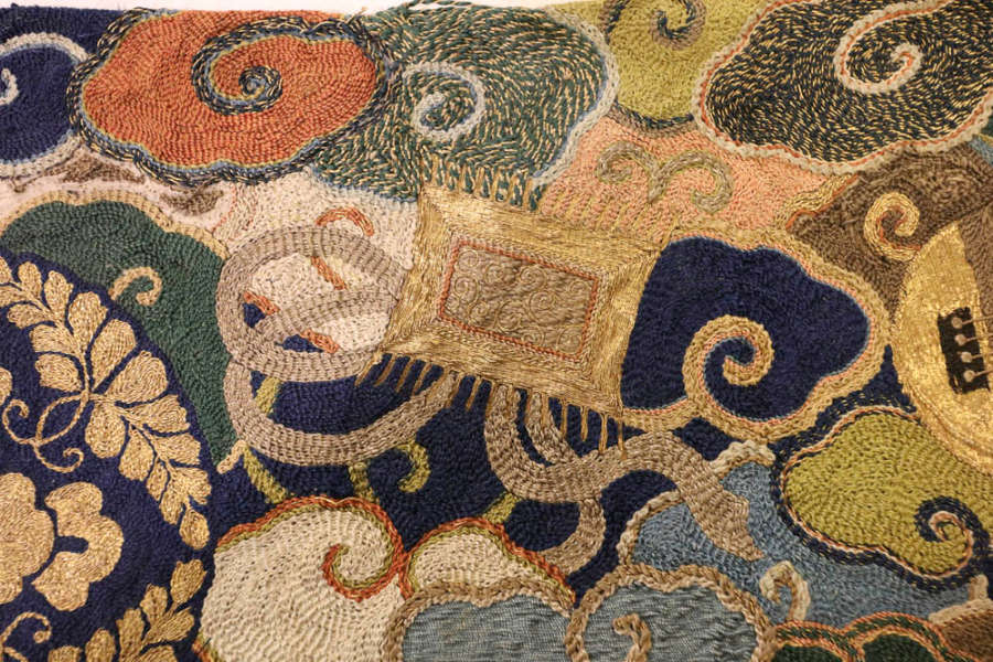 Silk, metallic yarn; embroidery