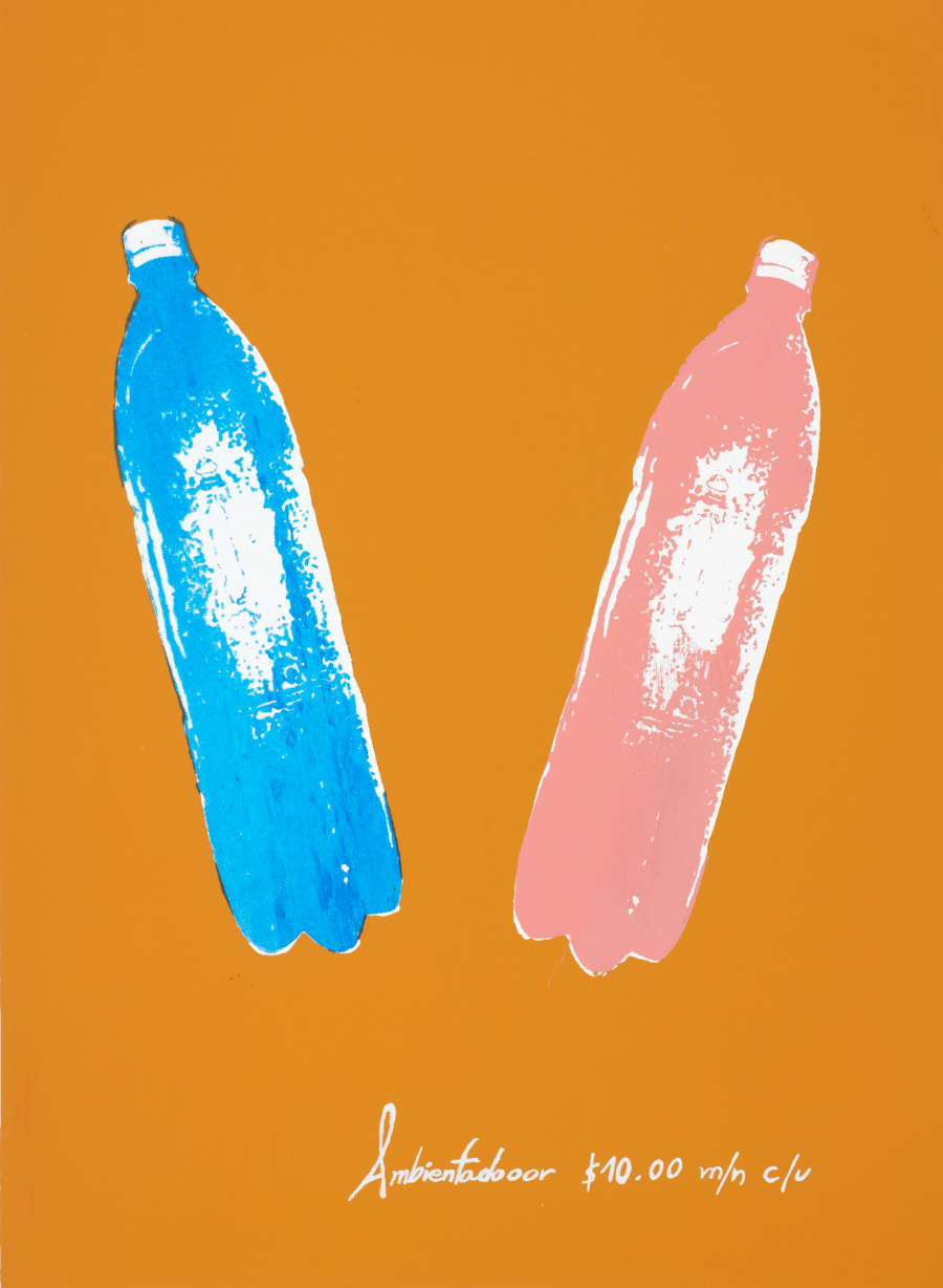 Inscription reading "Ambientadoor $10.00 m/n c/u" printed in lower right hand corner of the ground.