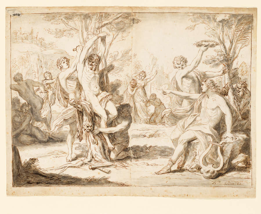 Apollo and Marsyas; Verso: studies of figures in graphite