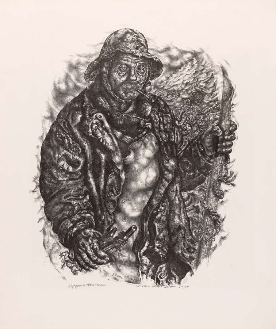 Inscribed in graphite, below image: "appears the man, Ivan Albright 1980." Inscribed in graphite, verso UR: Gift for IA