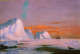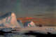A New Bedford native and practicing Quaker, Bradford sought evidence of God’s role in nature and strove to record “every dash of color which the great Painter in his benevolence vouchsafed to us.” In the summer of 1869 he made his second trip to the northeastern Canadian coast, accompanied by photographers equipped with large-format cameras and glass-plate negatives. Freezing temperatures prohibited painting out-of-doors, but Bradford made color notations, snugly dressed in “the sealskin suits of the Eskimeaux.” The photographic images were instrumental in creating Arctic Sunset, as they captured natural phenomena such as light glancing off huge expanses of ice.