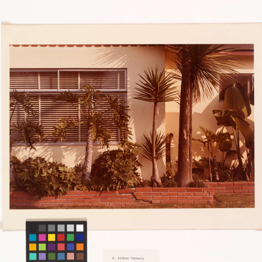 Typed label below image:H. Arthur Taussig / Artesia, Ca-1979 / #58 out of an exhibition of 100; verso, signed in black felt tip, lower margin:Artesia, Ca 197 58 / 100 Arthur Taussig