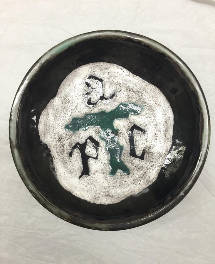 The letters a/t/pc (Association des Peintres Cartonniers de Tapisserie); the smaller letters reserved in black and the T in green glaze.