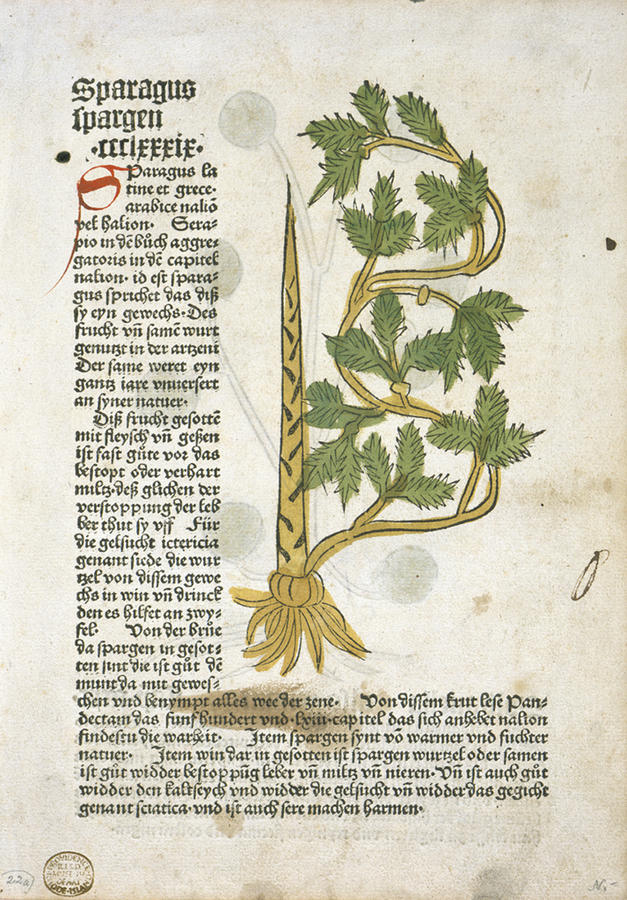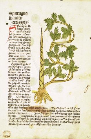 Asparagus (Sparagus), 1491 edition of jacob Meydenbach's Garden of Health (Hortus Sanitatis)