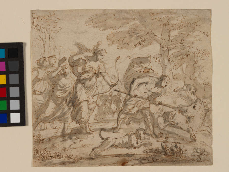 Inscribed in pen and brown ink on verso:Atalanta blessa prèmiere le Gangleir de Calydon ; in pencil the number:1478