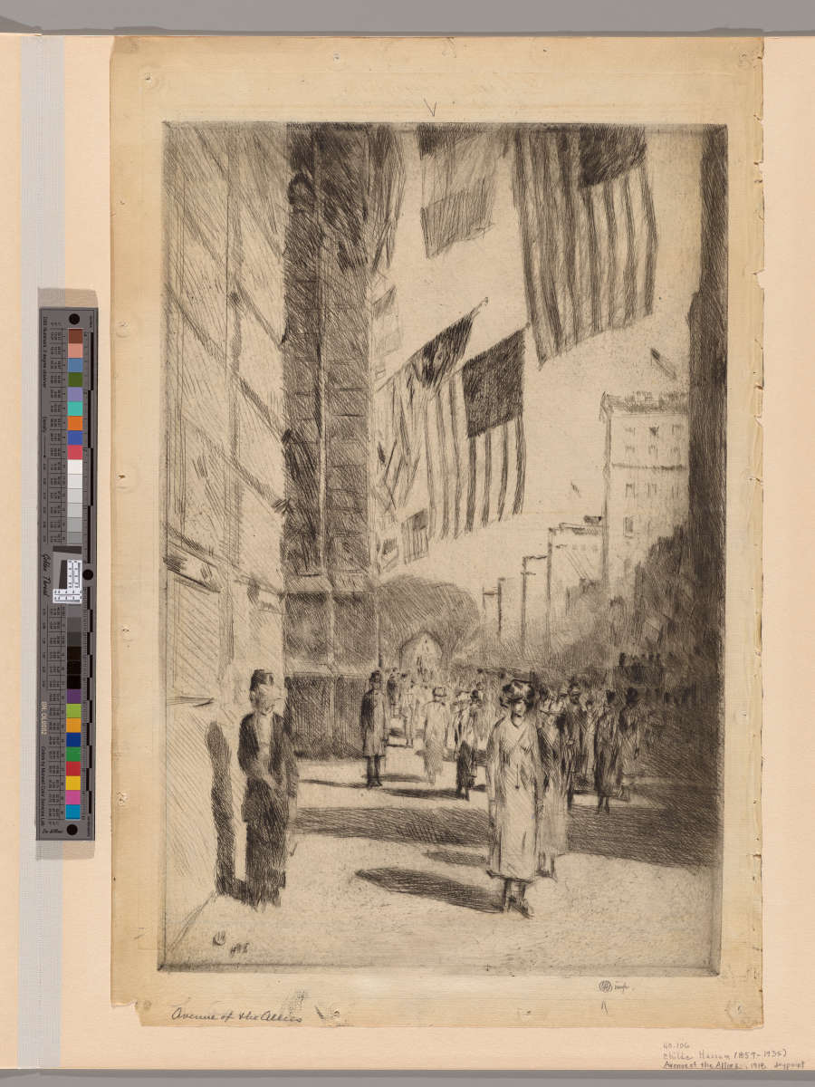 Original--Recto:monogrammed in pencil below platemark on right:CH (in circle);In LL of sheet:Avenue of the AmericasIn Plate--In LL:CH (in a circle)/1918