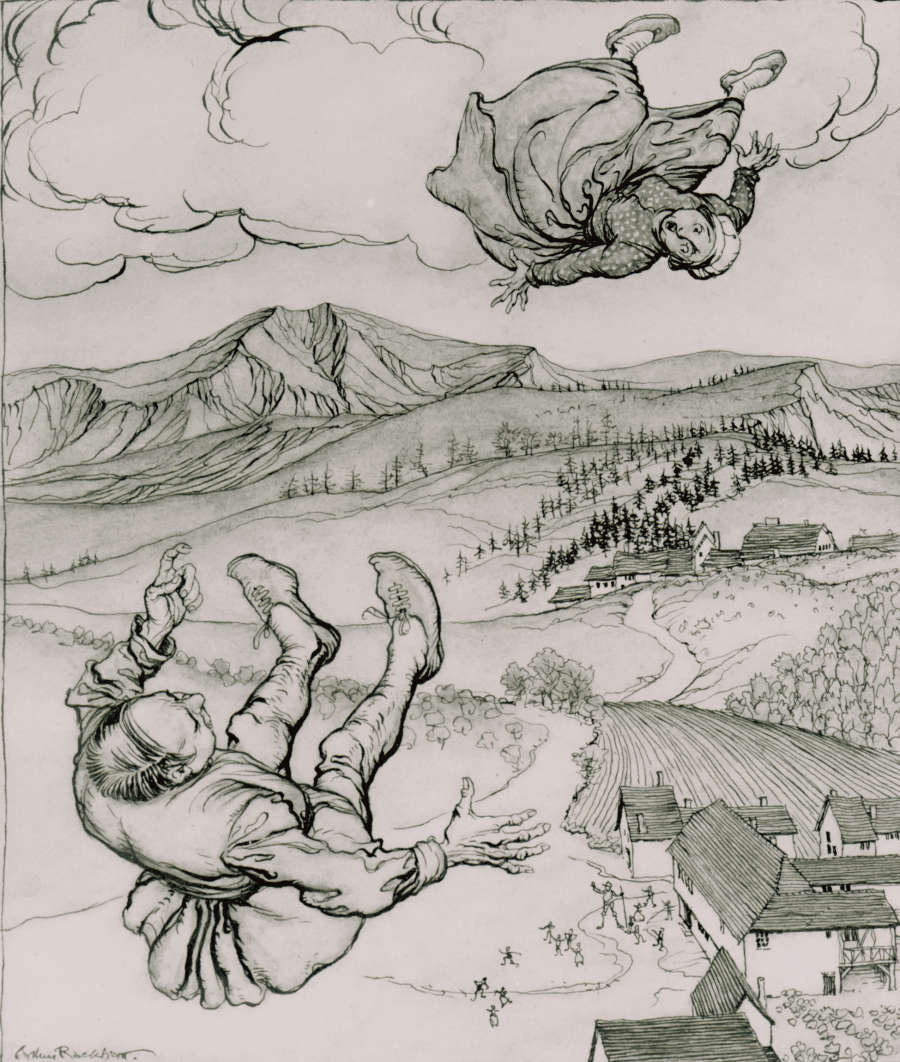 The Bailiff and his wife floating about in the air where thy'd been kicked by the Young Giant