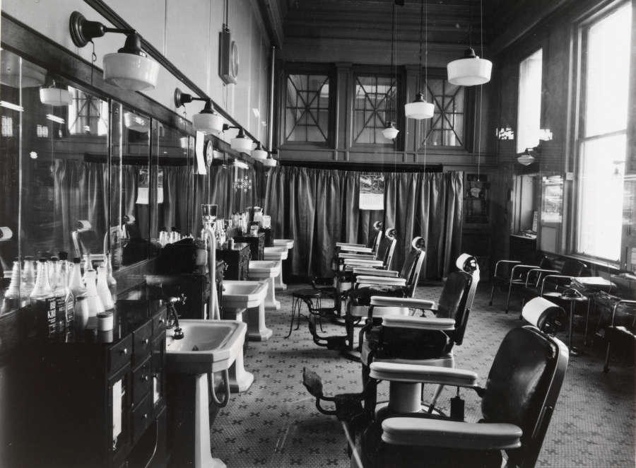 On front, WILLIAM BURKE, BARBER SHOP, 1967 printed in black ink in lower left corner, ON back, 68.107.12 written in graphite in lower left corner.