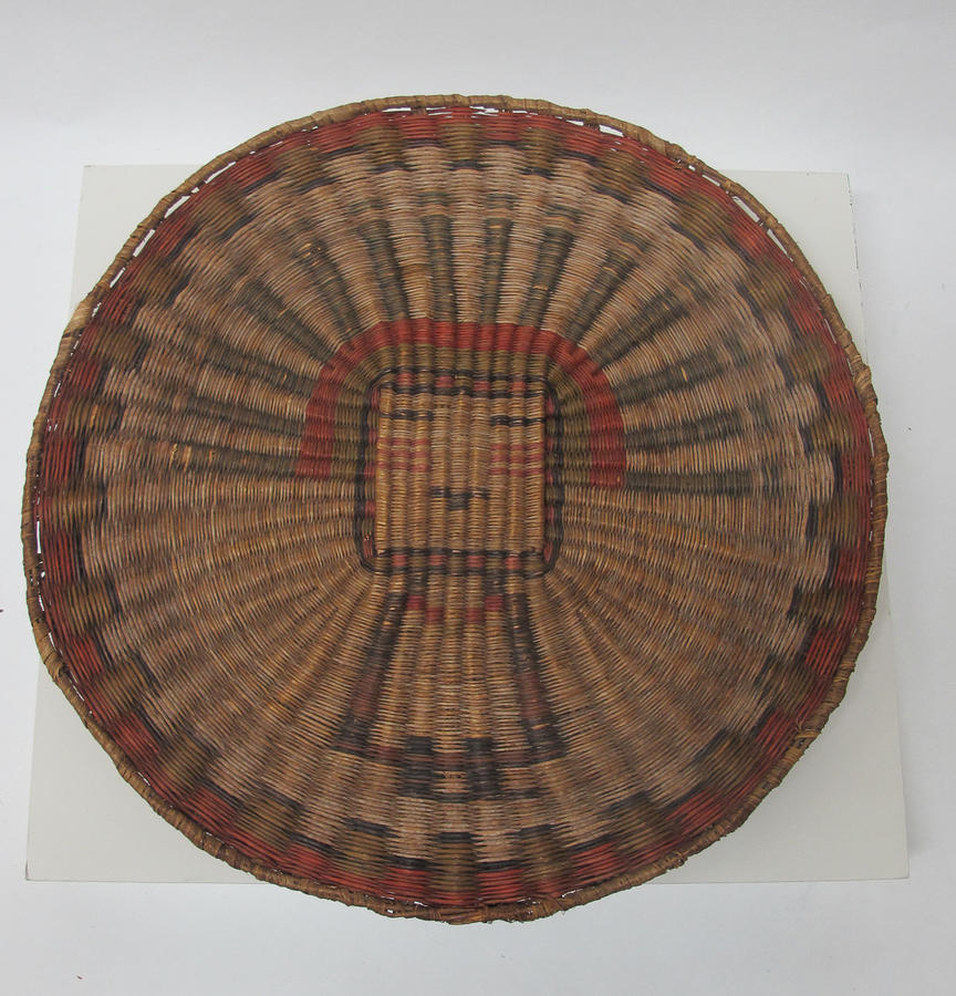 Rabbitbrush, sumac, or willow, yucca, kaolin, pigment; wicker plaited