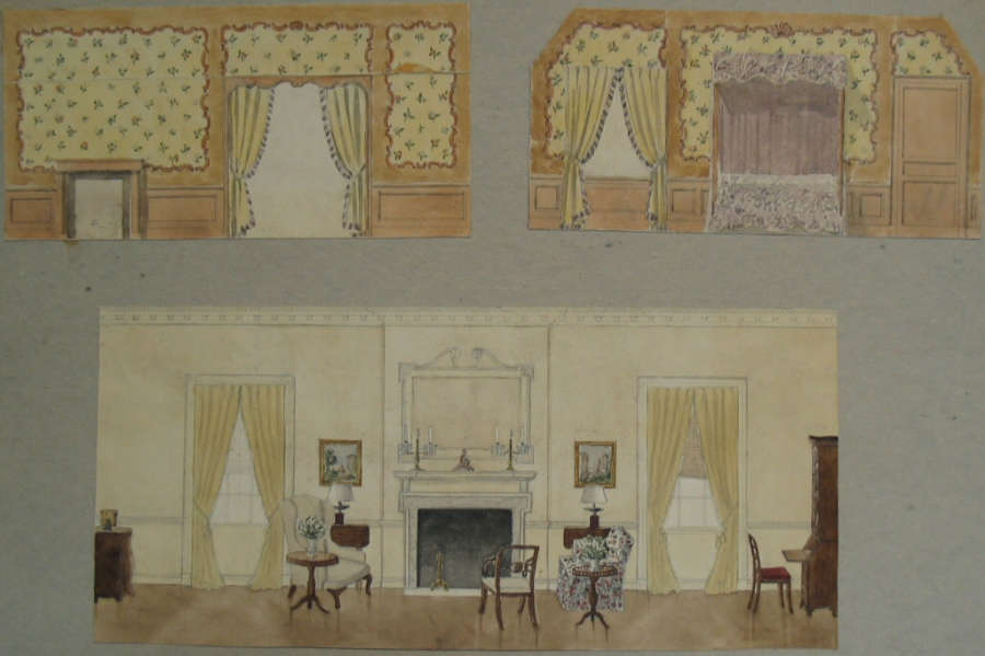 bedroom and living room; Wall Treatments, ca. 1920-ca. 1970