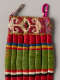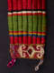 Wrapped wool yarn, secured at ends with cross-stitched embroidered panels