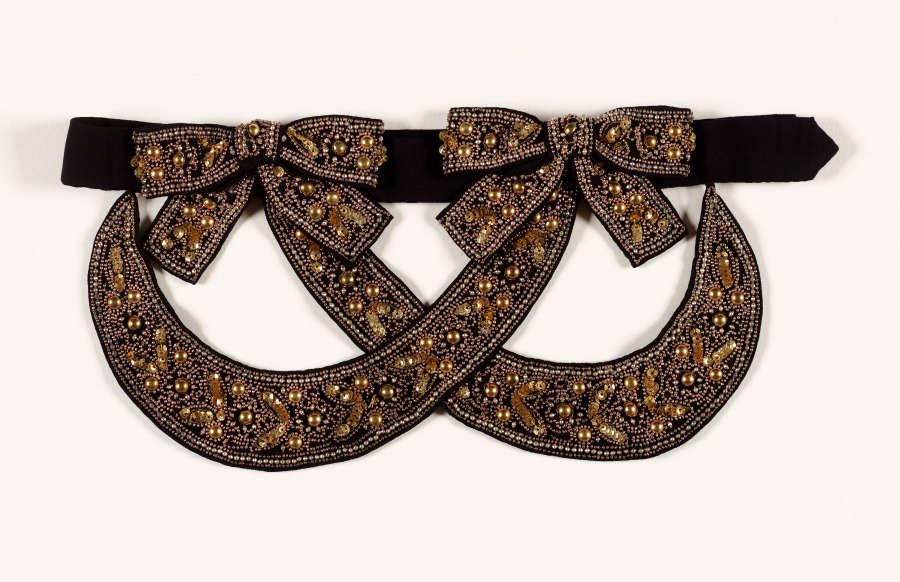 Silk, crepe yarn, beads, sequins; plain weave, embroidered