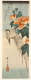 Inscription verso, bottom right: [Japanese Characters] Red circular stamp verso, bottom left.Poem: Ariyake no/nurete ochitaru/fuyô kanaThe morning moon-/the mallow wet with early dewAriyake means the moon still visible in the morning on certain days of the month. The rose mallows have collected the moisture in their cup-like flowers and will soon drop from the weight of the water. The poem can be given an erotic reading using the same imagery. For other prints with the same poem see 34.186 (Box 59) and 20.1243 (Box 1).