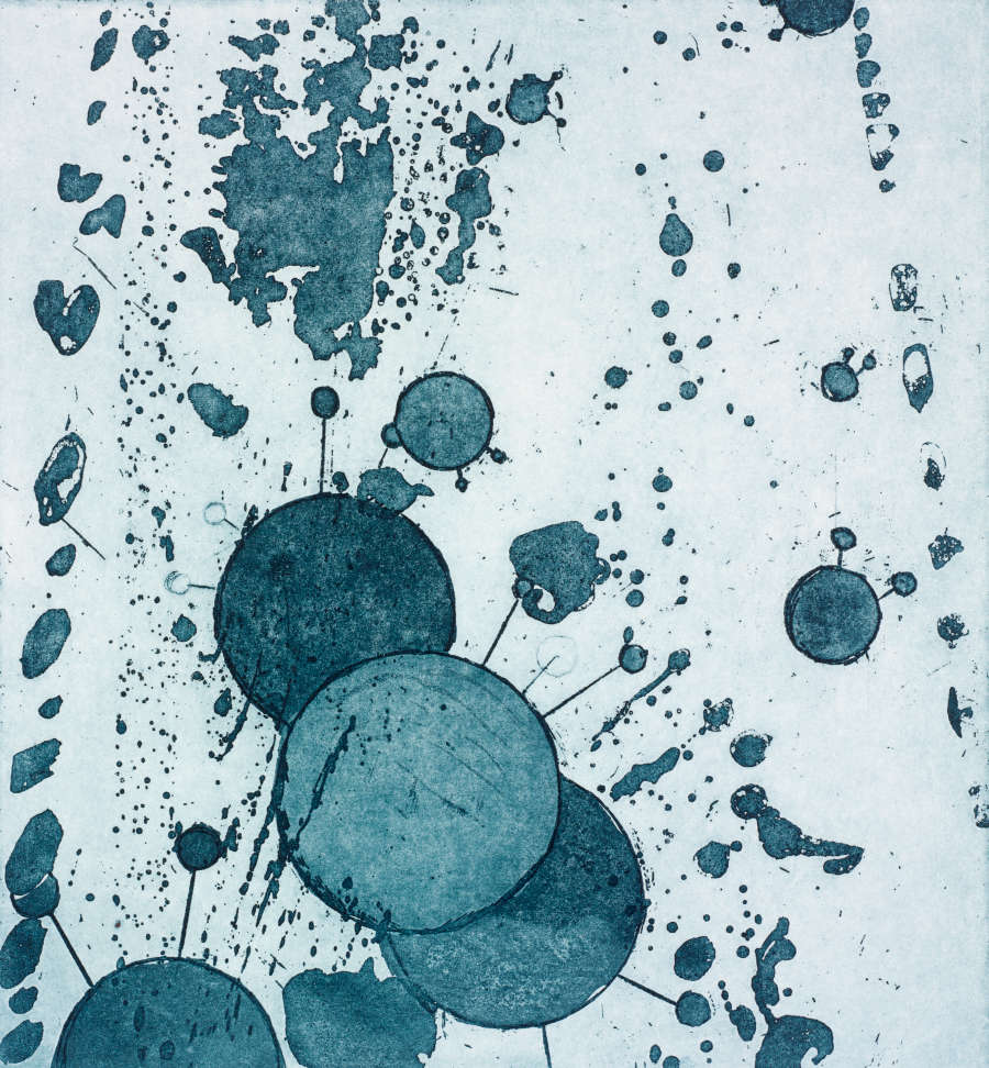 Signed and dated lower right. Titled "from birth: h2o" in center beneath the image