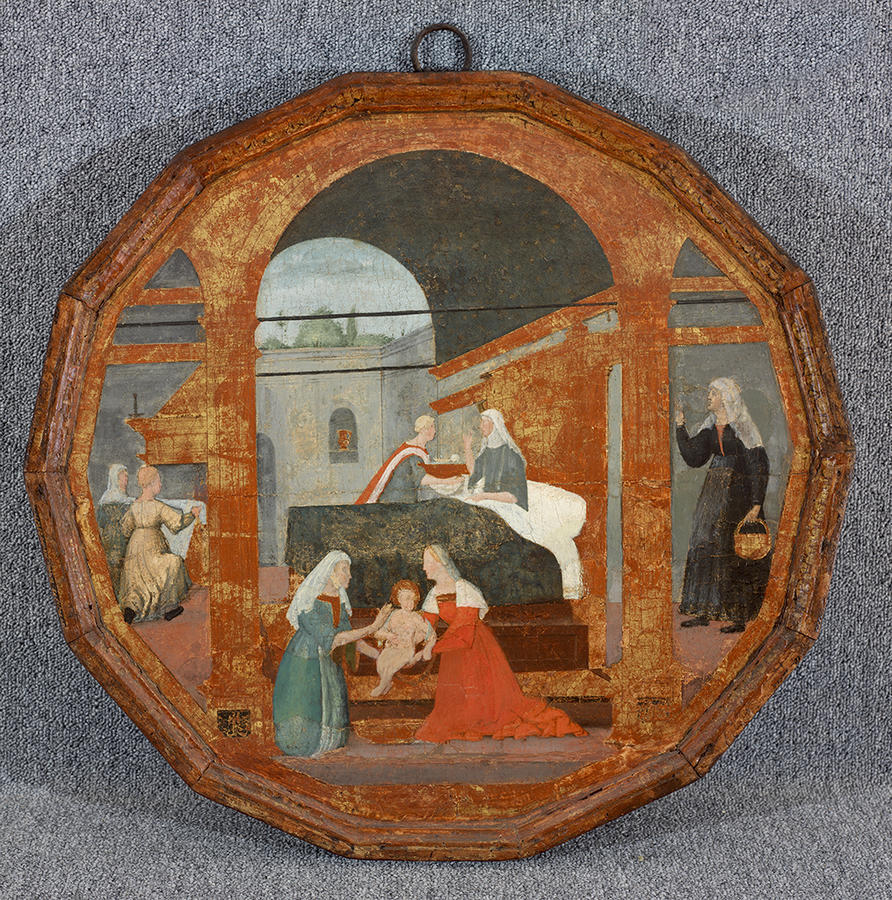 Birth Tray (Desco da Parto) Depicting the Birth of the Virgin, ca. 1430