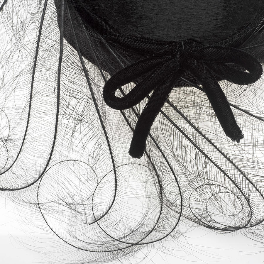 Wool, silk, egret feather; felt, cording, cut warp pile
