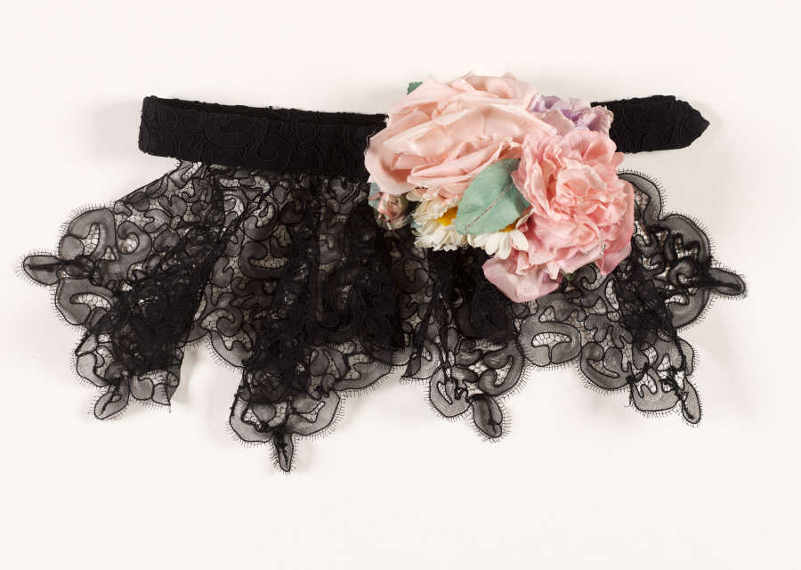 Silk, cotton, synthetic; machine lace (guipure), embroidered, embellished