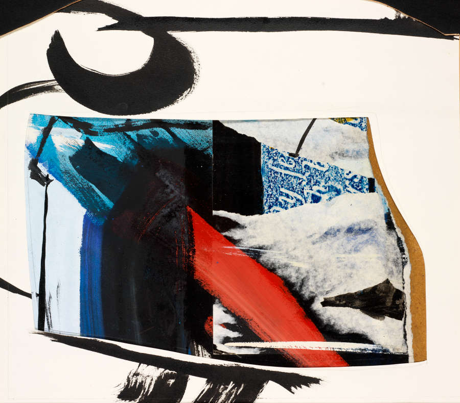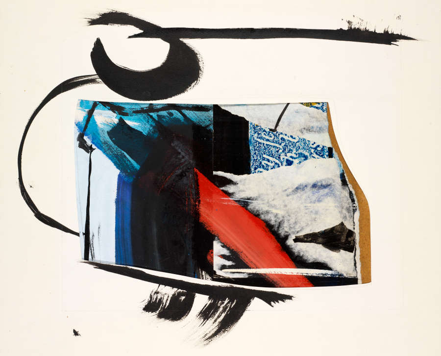 Brush and ink and gouache collage and graphite on paper mounted to board