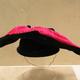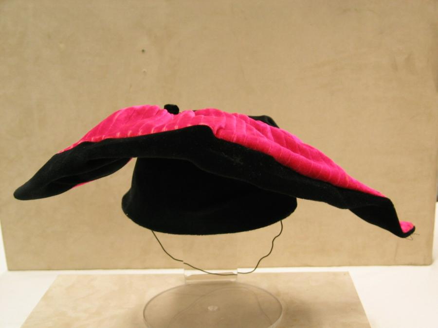 Black velvet hat with red detailing, ca. 1940