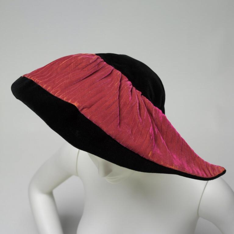 Black velvet hat with red detailing
