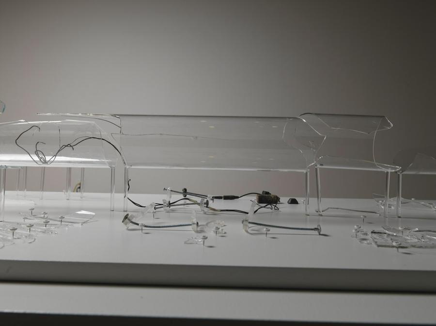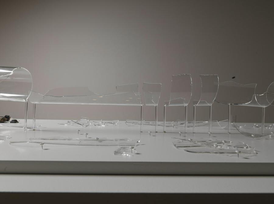 Shattered glass rocket, color photographs, light box