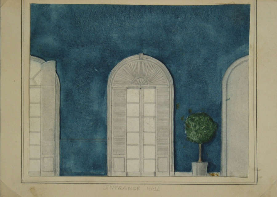 blue and white entrance hall; Wall Treatments, ca. 1920-ca. 1970