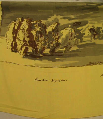 Signature of artist:"Bomber's Departure by Ascher" on wide unprinted sewn border on all sides.