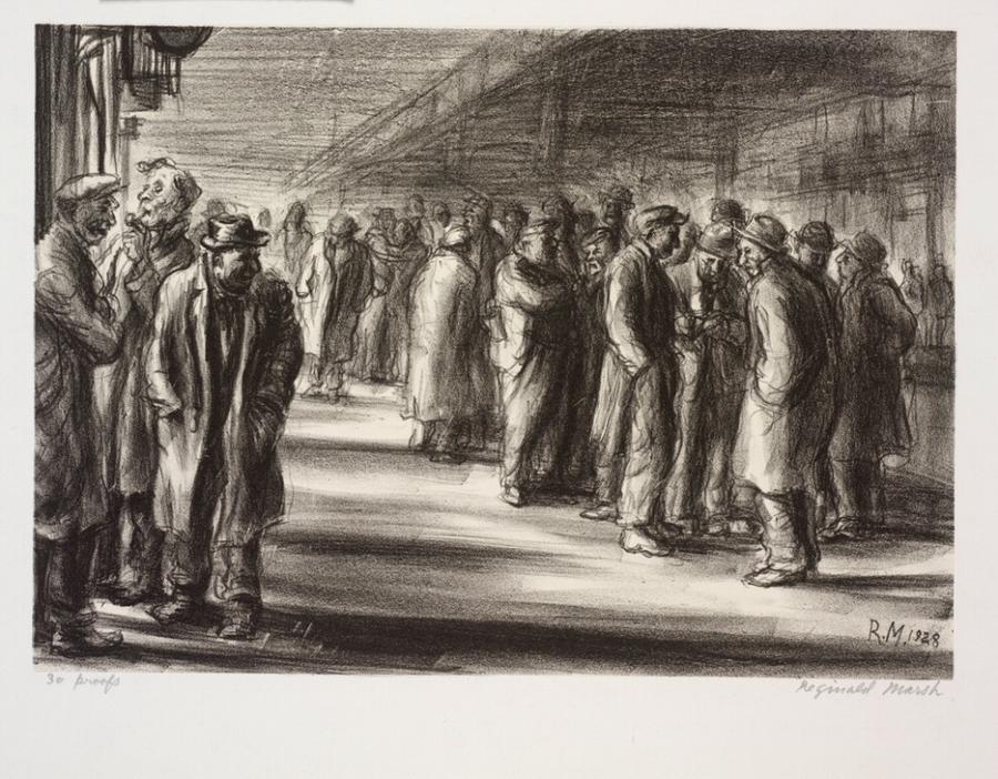 Original--Recto:in pencil below image on left:30 proofs; signed on right:Reginald Marsh; in LL of sheet:Bowery 15.00Bowery 1928; in LR of sheet:RM.12$10-/P12In Plate--In LR:R.M.1928