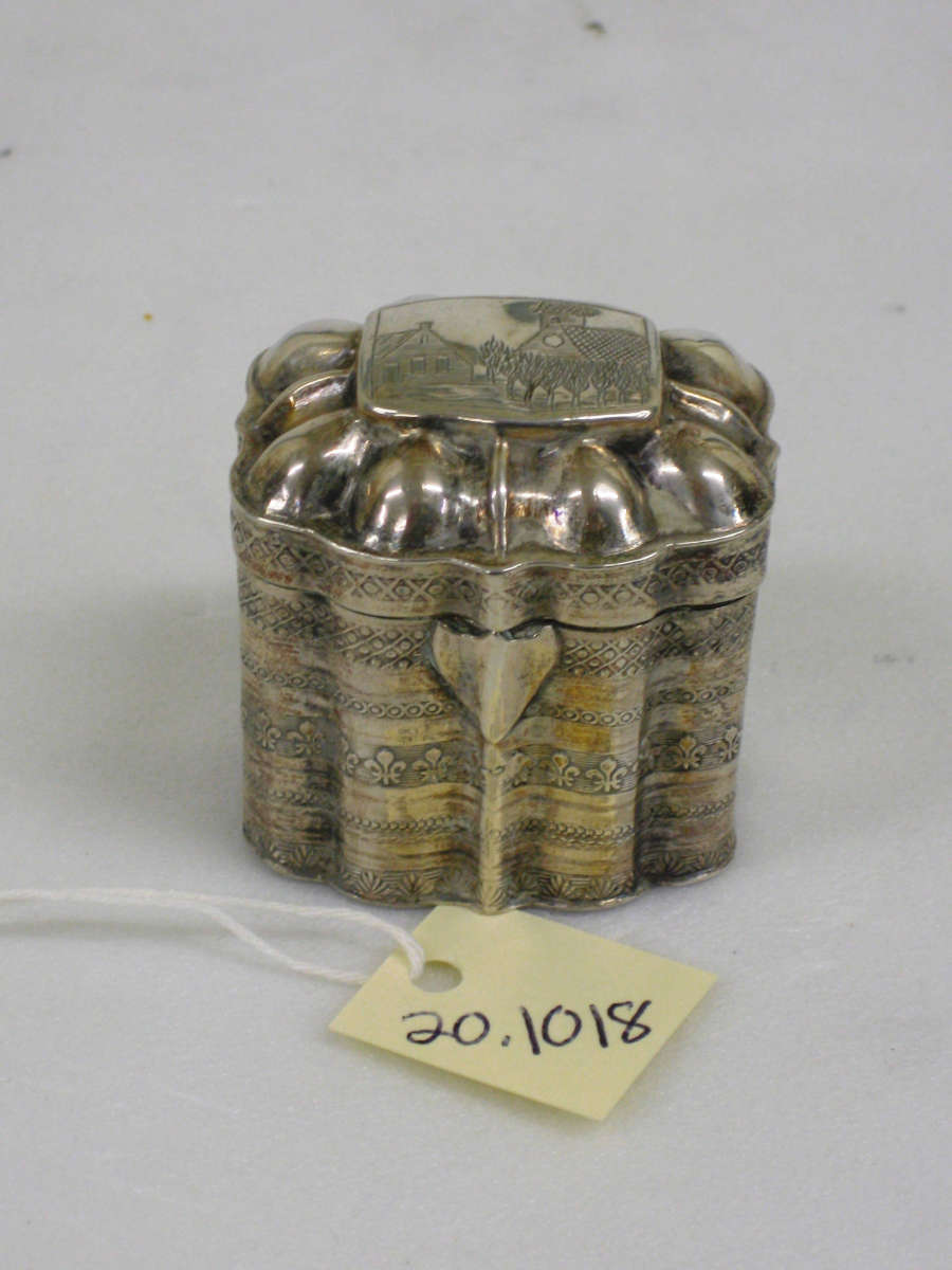 Marks: Lion passant contourne and the numeral 2 in hexagon=833 over 1000 silver.Head of Perseus (with A on his cap) in circle=office mark.R in circle and two indistinguishable marks. Credit / Object Number
