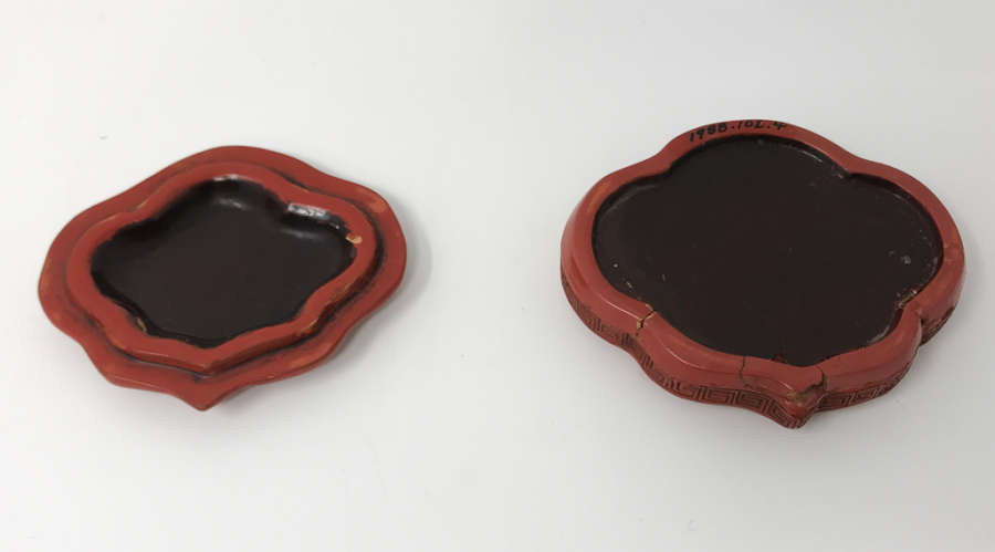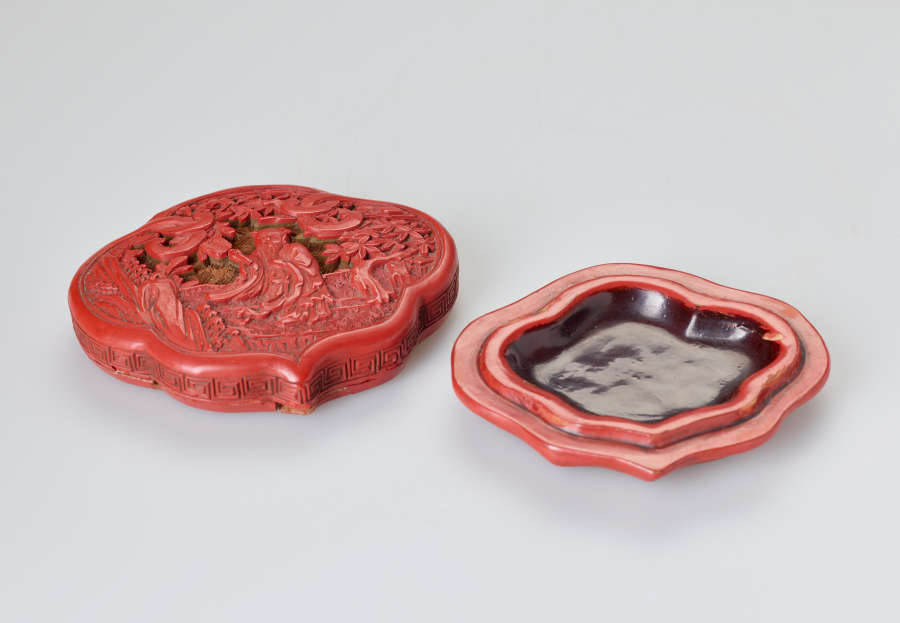 Wood with red cinnabar lacquer