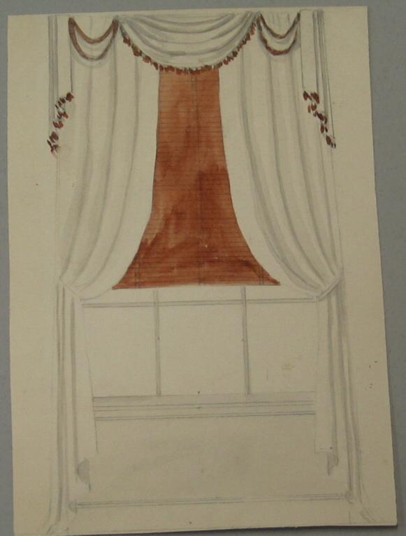 Brown edged curtains; Window treatment, ca. 1920-ca. 1960