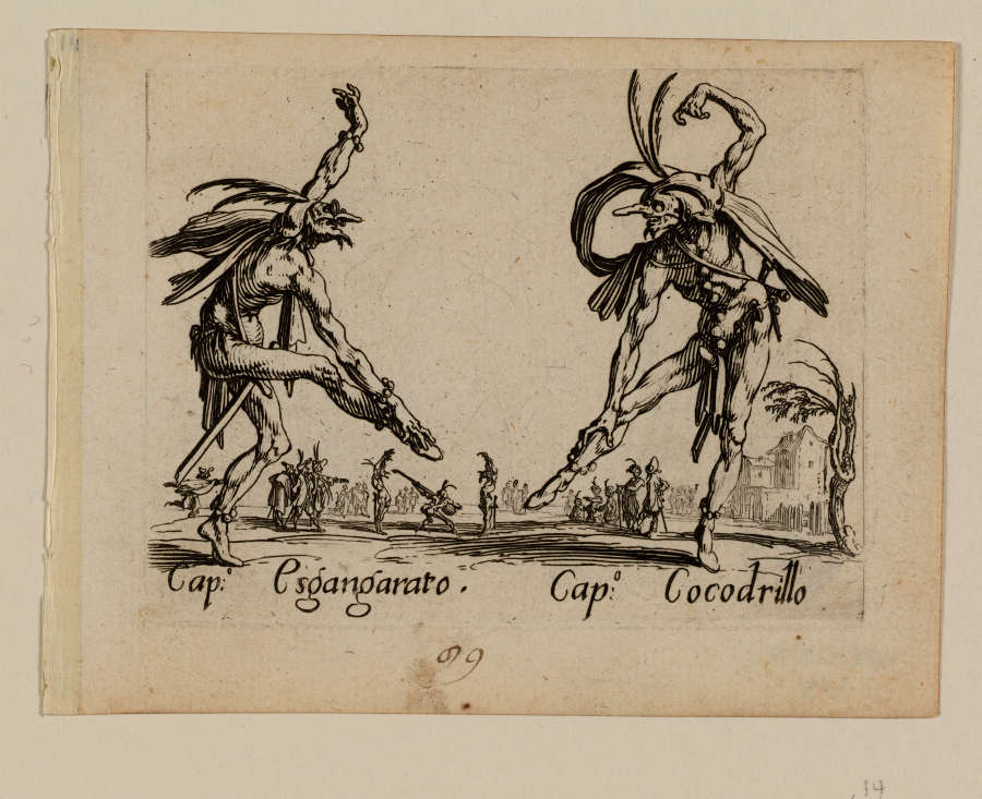 Original--Recto:in brown ink, LC:99; in pencil, UL:14 In Plate--In LL:Cap. Csgangarato; in LR:Cap. Cocodrillo