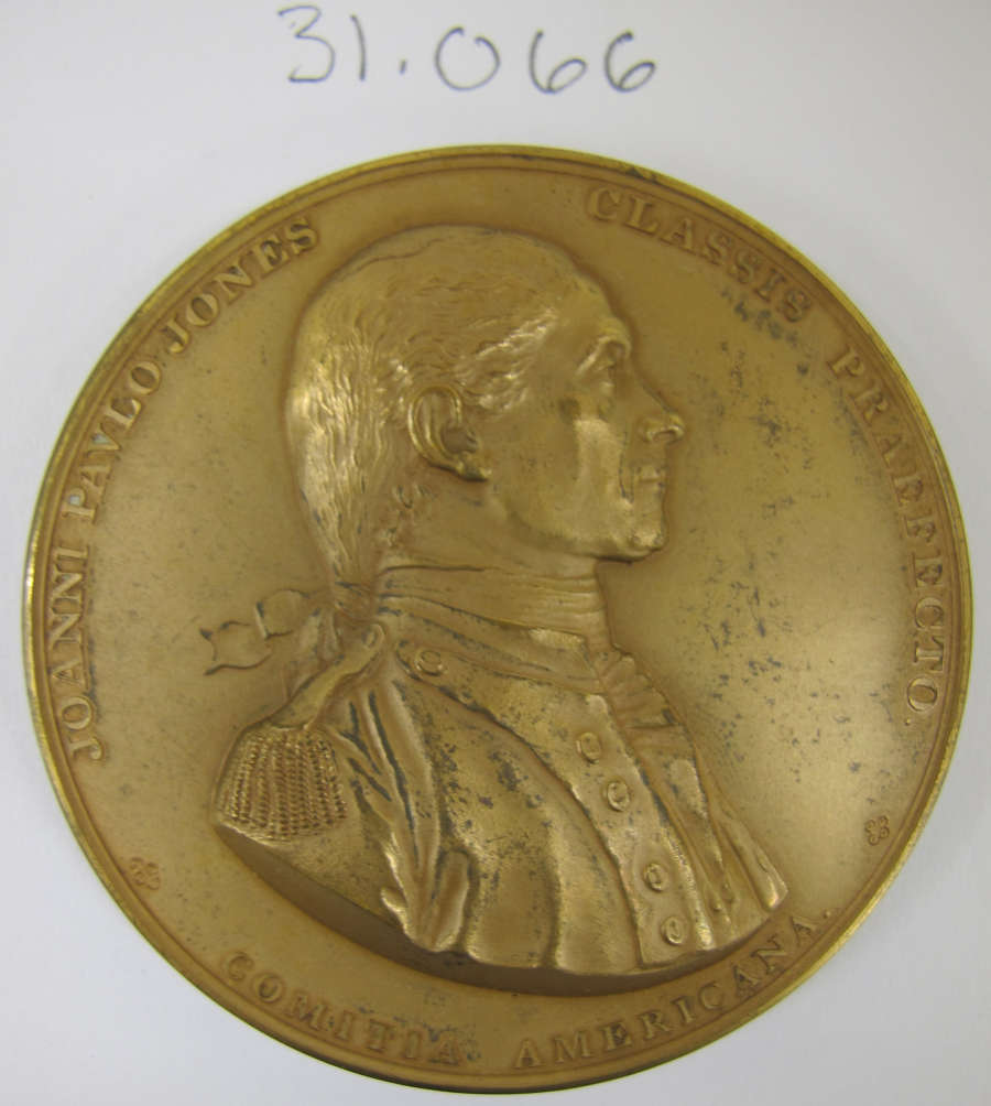 Obv: Johanni Paulo Jones Classis Praefecto Comita Americana.Rev: Hostium Navibus Aut Fugatis.Ad Oram Scotiae XXIII Sept. M.D.CCLXXVIIII.