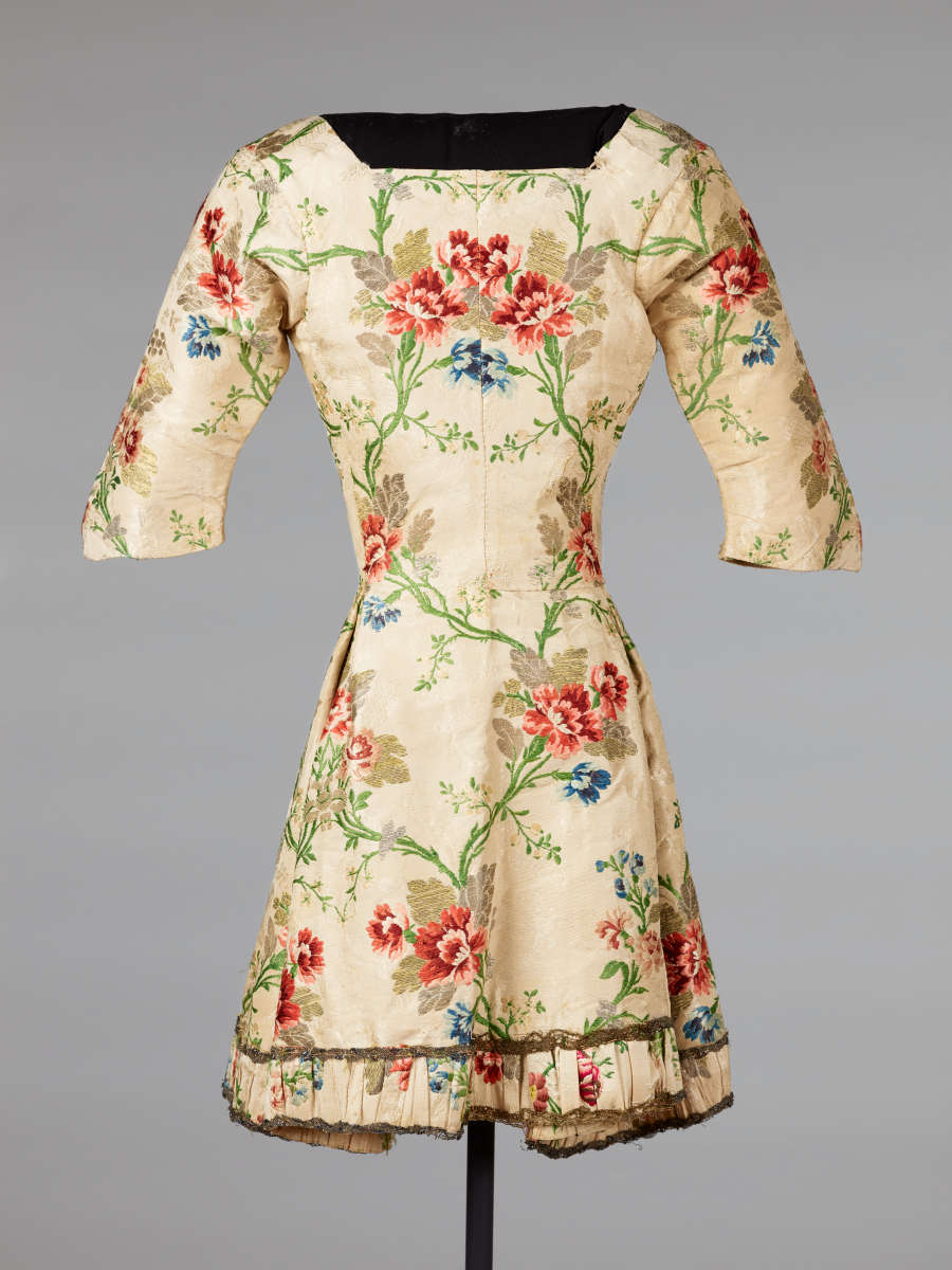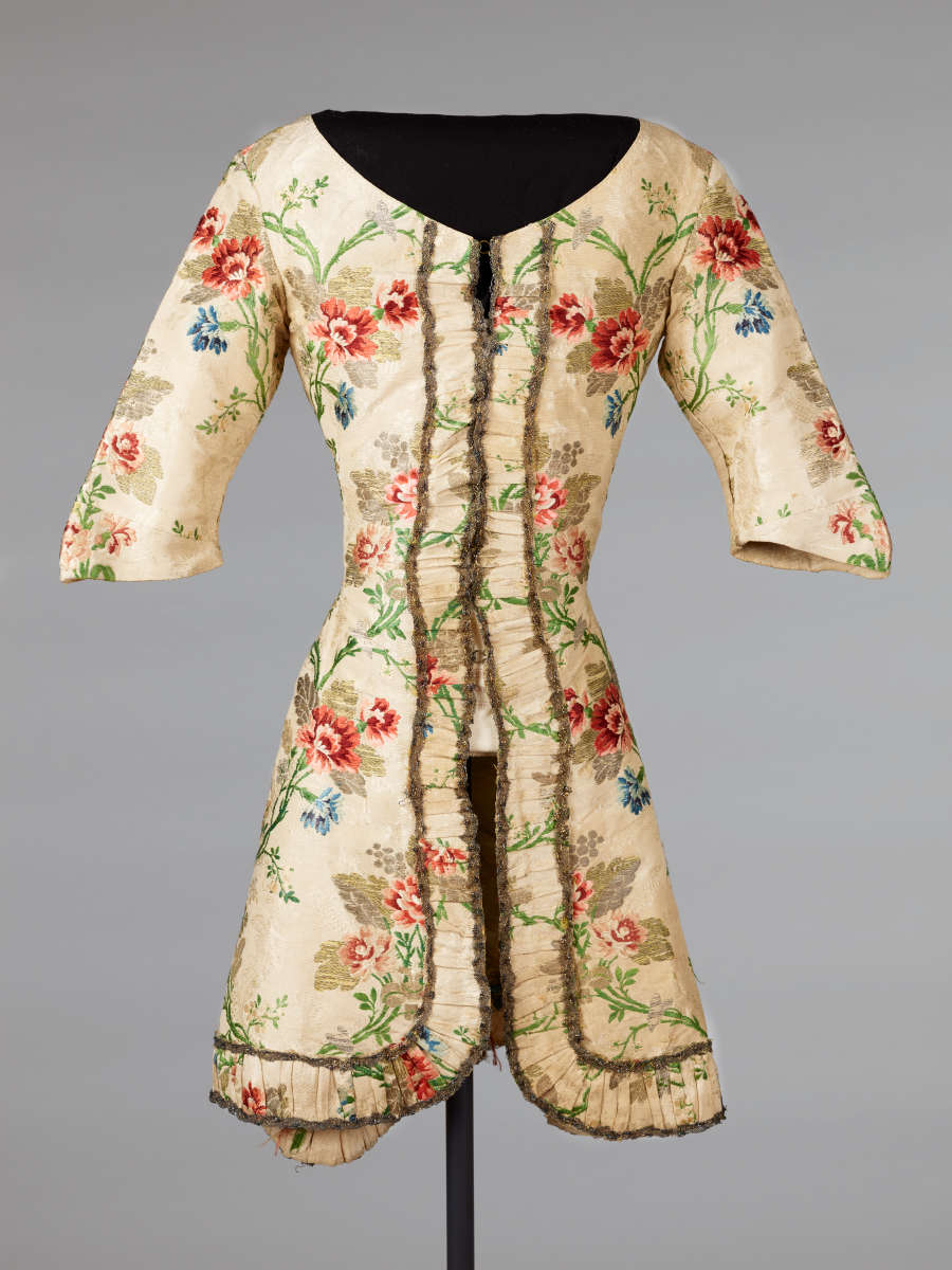 Silk brocade with supplementary metallic-wrapped wefts and metallic bobbin-lace trim