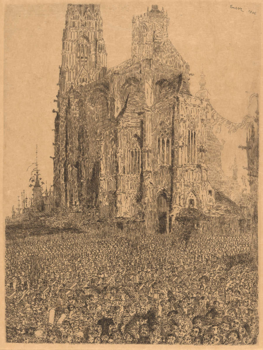 Signed, in pencil, at LR below plate mark: James Ensor. Signed and dated in plate at UR: Ensor 1886.