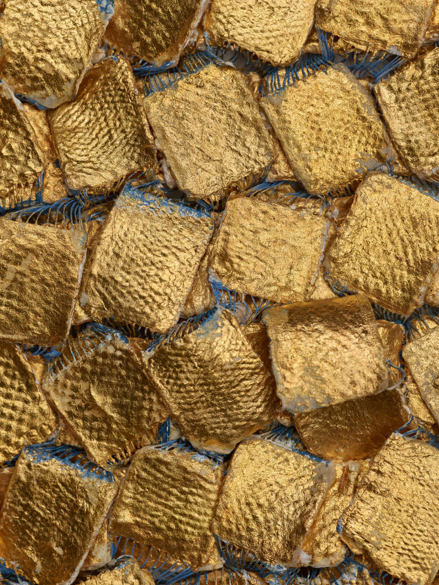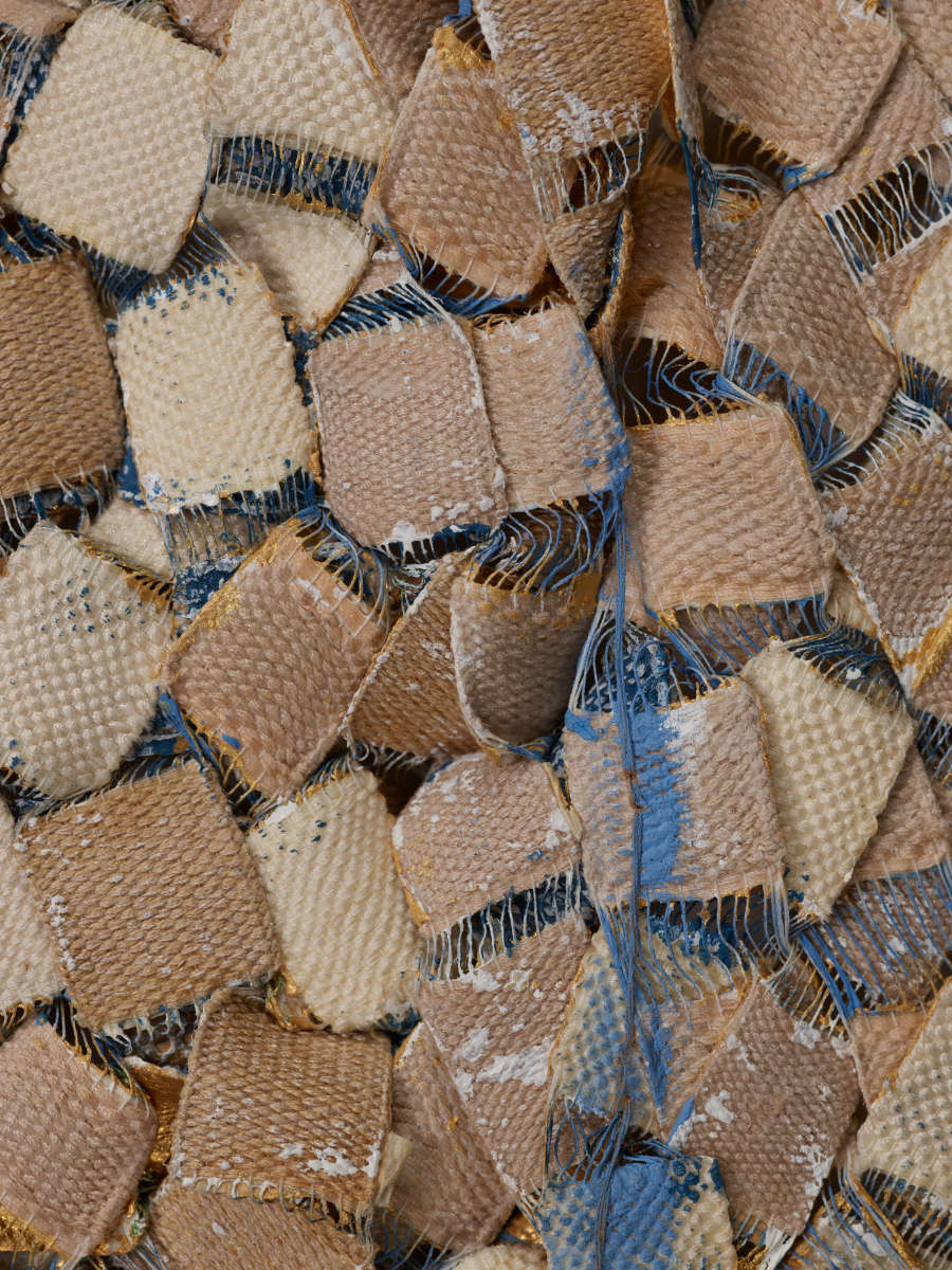 Gilded and interlaced cotton plain weave, painted along lower edge