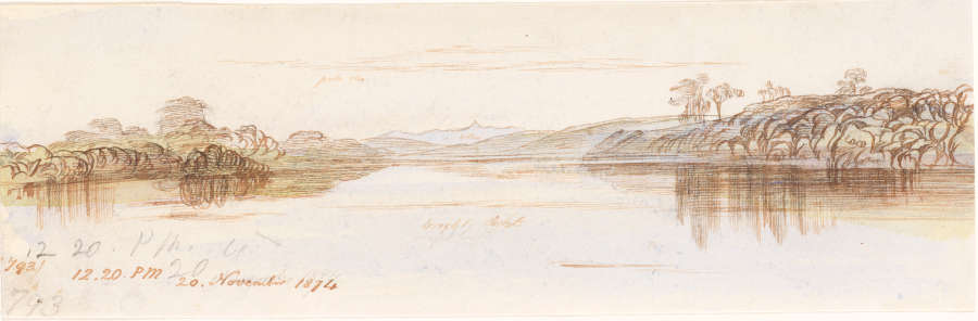Inscribed LL by artist:title date ; LL in brown ink:793./12.20PM/20 November 1874 (over pencil) ; LL in pencil:12 20. PM/ 20/ 793 ; color notes in brown ink:pale blue/blu/bright light Pencil notes