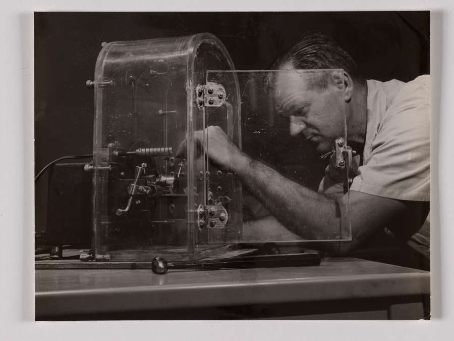 Chemical Division / Machine shop employee repairing apparatus