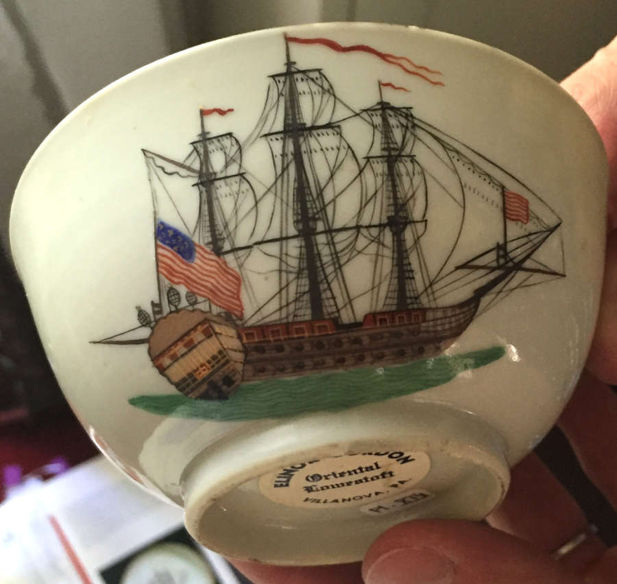 On bottom of cup: [written in red paint] "22.1974.179." [white round sticker] "ELINOR GORDON/Oriental/Lowestoft/VILLANOVA, PA." [white rectangle sticker] "Pl.XIX."