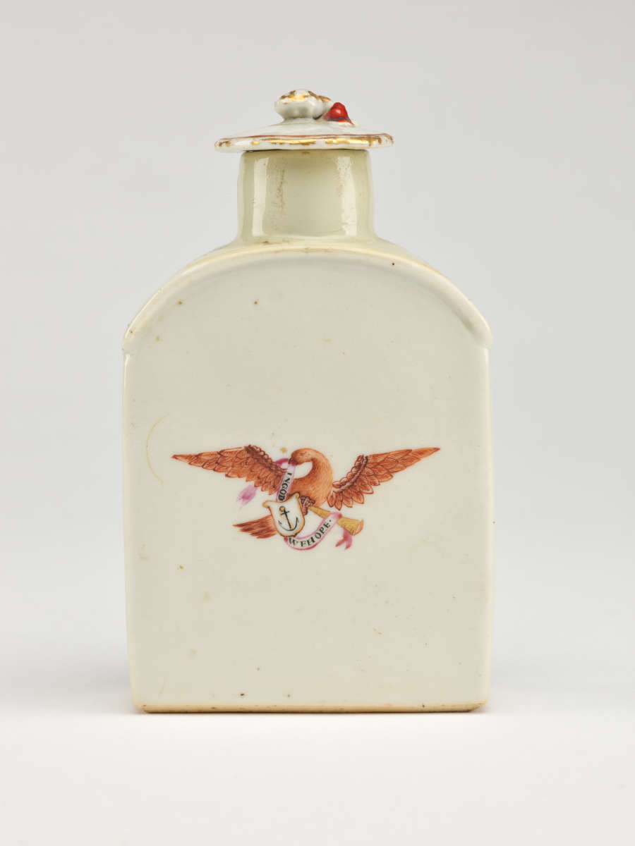 Chinese Export Porcelain Tea Caddy with Arms of RI
