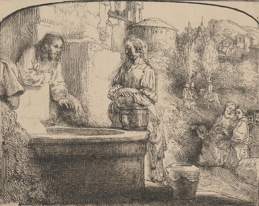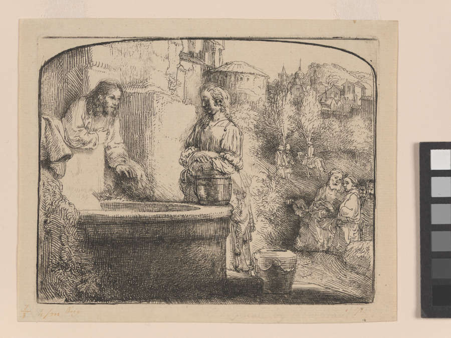 Lettered within image, on the rim of the well: "Rembrandt f. 1657"; and centre left: "Rembrandt f. 1658"